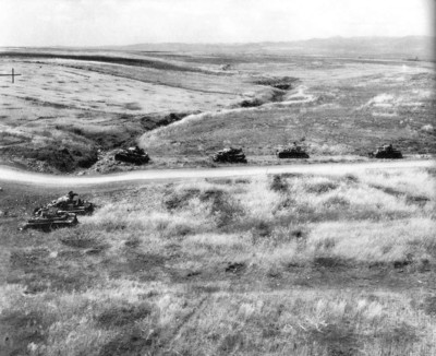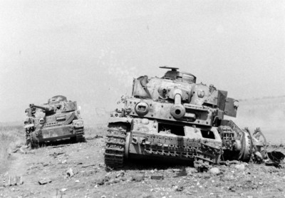 Так в напряжении и гнетущем ожидании прошел почти весь день. А на закате бойцы услышали рев моторов приближающейся колонны немецких танков. Их было около 50-ти, за ними следовал батальон пехоты.