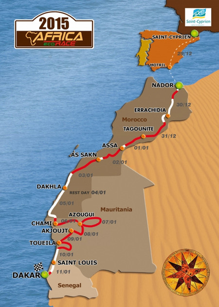 После отмены Дакара-2008 из-за угрозы террористических актов, начиная с Дакара-2009 гонку перенесли на территорию Южной Америки. Но мало кто в курсе, что с 2008 года на африканском континенте проходит другой ралли-марафон — «Африка Рейс», и 28-го декабря 2014 года стартует его седьмое издание! Ралли-марафон «Africa Eco Race 2015» состоится с 28 декабря 2014-го по 11 января 2015 года и определенно станет самым сложным за всю историю гонки. Основная изюминка ралли заключается в том, что оно проходит по классическому «дакаровскому» маршруту. Совмещая традиции классического «Париж-Дакар», заложенные его основателем Тьерри Сабином, спортивный директор «Africa Eco Race» Рене Метдж и его команда продолжают открывать новые, еще неизведанные трассы в Марокко и Мавритании, сохраняя символичный финиш на Розовом озере в Дакаре.