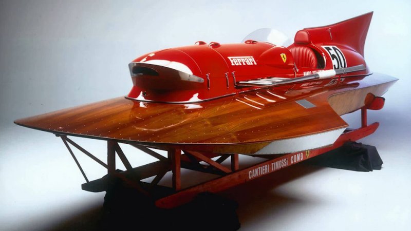 Величайший производитель спорткаров современности, Ferrari, в 1953 году заявил о себе на воде, да так, что поспорить с ним так никто и не смог по сегодняшний день. Итальянский судостроитель Ахилл Кастольди долгие годы мечтал поставить рекорд скорости на воде. В начале 50-х он познакомился с гениальным Энцо Феррари и уговорил того ввязаться в эту авантюру. Для судна-рекордсмена Энцо выделил V12 объемом 4,5 литра. Такой же двигатель устанавливался на болиде Формулы 1 Ferrari 375 GP. Благодаря другим карбюраторам и двум нагнетателям его мощность составляла 502 л.с. Уникальна и конструкция самого гидроплана. Верхняя его часть стальная и походит на гоночный автомобиль той эпохи, нижняя же сделана из красного дерева, а её форма образует воздушную подушку, необходимую для снижения силы трения о поверхность воды. Судно, получившее название Ferrari Arno XI на озере Изео развило скорость более 240 км/ч – результат, который по сей день не смог преодолеть ни один катер весом менее 800 кг. Пять лет назад он обрёл нового владельца за 1,5 млн. €. Конечно, этот красивейший и ценный гидроплан едва ли когда ни будь снова окажется на воде.