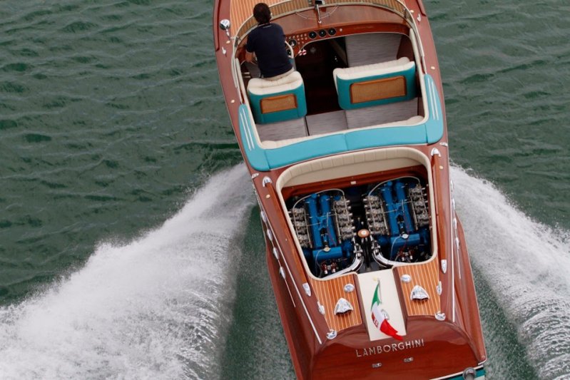 Riva Aquarama – довольно известная модель среди ценителей моторных лодок. Они отличаются элегантностью, достаточно высокой для своего класса скоростью, а также качеством исполнения, чем заслужили звание «Ferrari среди лодок». Обычно они оснащались парой V8 производства Cadillac или Chrysler, но только не личный катер Ферруччо Ламборгини. В 1968 году специально для него была создана лодка с двумя 3,5-литровыми 400-сильными V12 от Lamborghini 350 GT. После смерти маэстро, катер пропал из поля зрения, однако 5 лет назад был обнаружен, при поддержке компании Lamborghini был отреставрирован и вновь спущен на воду.