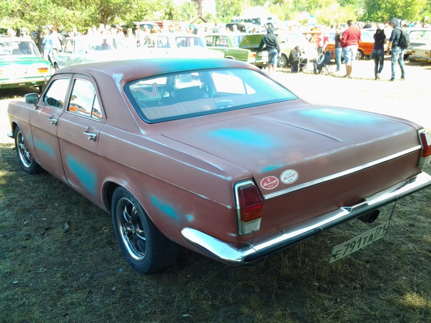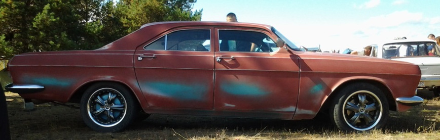| Этот автомобиль был выпущен в 1983 году, а выкуплен настоящим владельцем в 2007, и именно тогда для ГАЗ-24 началась новая жизнь – во всех смыслах. Изменения, которые произошли с Волгой, впечатляют, и, нравится вам её внешний вид или нет, с уверенностью можно сказать одно: она точно привлекает внимание! Владелец ГАЗ-24 очень ответственно подошёл к делу: он всегда мечтал собрать достойный автомобиль, а это дело не из лёгких. Каждая деталь в машине не избежала его критического взгляда, владелец перебрал машину досконально, вручную, можно даже сказать со страстной любовью к своему делу, и именно поэтому результат получился настолько ошеломляющим. Он переделал форму кузова в своём стремлении сделать из Волги автомобиль, напоминающий старые американские автомобили. Самое необычное – он даже занизил крышу, чтобы, с одной стороны, немного отойти от узнаваемого вида ГАЗ-24, а с другой – приблизиться к мечте. Пришлось заглянуть и под капот – этого, очевидно, было не избежать, машина уже не первой свежести, а сердце автомобиля нужно «проверять» в первую очередь. Изначально владелец выбрал приятный цвет аквамарин для своего четырёхколёсного друга, а на переднем капоте было изображение языков пламени, но очень скоро краска начала облезать… Так он пришёл к идее «состарить» автомобиль: