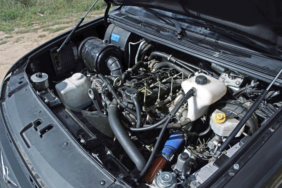 Поменяли настройки двигателя, вот в чем дело! Благодаря прошивке, которой пользуется, в частности, спортивная команда «ГАЗ Рейд Спорт», мощность мотора доведена до 174 л.с. при 2500 об/мин, а тяга составляет 520 Нм при 2000–2200 об/мин. Теоретически похожих показателей можно было бы добиться установкой 2,8-литрового дизеля от современного Toyota Land Cruiser Prado, его мощность 177 л.с. при 3400 об/мин, а крутящий момент 450 Нм при 1600–2400 об/мин, но это стоило бы совершенно других, гораздо больших денег.