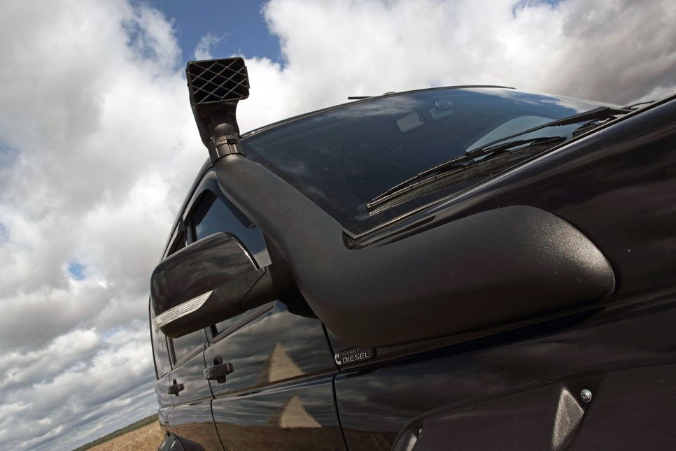 Воздух к мотору поступает через герметично установленный шноркель, сапуны мостов и агрегатов трансмиссии выведены под капот — автомобиль готов к преодолению серьезных бродов
