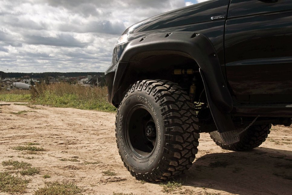 Расширители колесных арок производства «Лаптер» установлены с расчетом использования не только обычной резины, но и арочных покрышек низкого давления