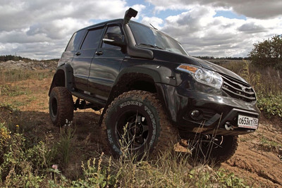 С виду этот UAZ Patriot почти не отличается от стандартного и смотрится так гармонично, что даже покрышки Mickey Thompson Baja MTZ LT 315/75R16 не кажутся чужеродным элементом