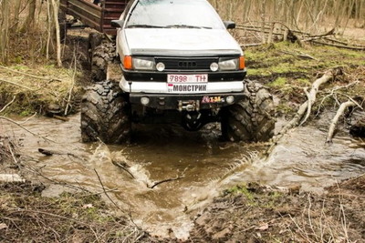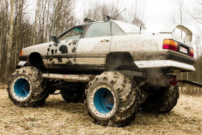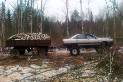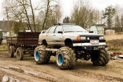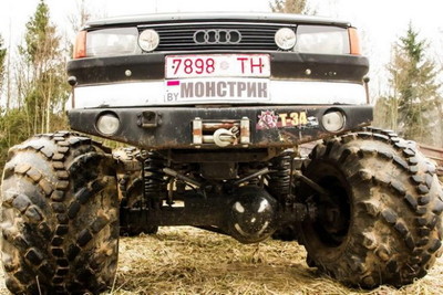 Рулевое от МТЗ. Бампер самоделка из 45 кг железа. Раздаточная коробка от БТР-60. Лебёдка. Расход топлива 50 литров на 100 км. Высота 2.5 метра, клиренс 600 мм.