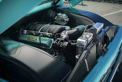 А вот в роли силового агрегата тут выступает свежий V8 от Chevrolet модели LS3 - состыкован он с трансмиссией 4L70E и 2-составным карданным валом. Селектор этого автомата расположен под рулём, да и внешность мотора была стилизована под ретро.