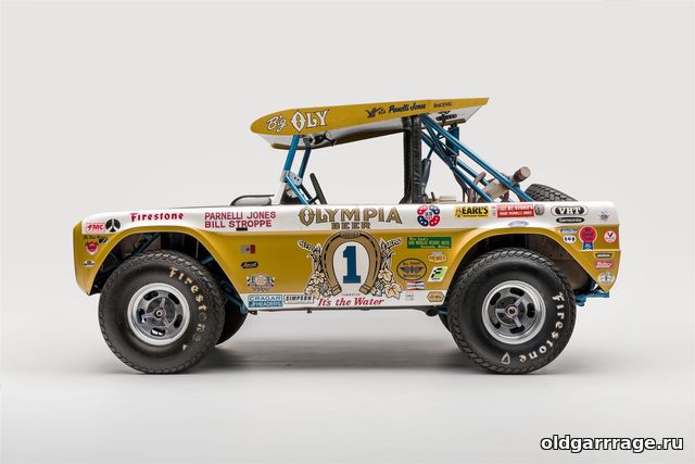 Не многие смотрели оригинальный фильма "Угнать за 60 секунд" 1974 года, в основном все смотрели римейк с Николасом Кейджем. А те кто смотрел возможно вспомнят, как Big Oly угоняют у знаменитого пилота Парнелли Джонса, сыгравшего в фильме самого себя. Сам Парнелли Джонс не собирался участвовать в гонках по бездорожью, ему хватало своей коллекции автоспортивных трофеев, включая победу в "Инди 500" 1963 года, но его "взял на слабо" Билл Стропп, являвшийся на то время производителем тюнинг запчастей, владельцем гоночной команды, дилером Форда. По итогу уже в 1970 году они выигрывают Baja 500 на Ford Bronco. Основываясь на своём гоночном опыте, Парнелли Джонс предположил, что специально построенный автомобиль с длинноходной подвеской и задним приводом будет намного быстрее их подготовленного Bronco, быть может, даже быстрее мотоциклов.