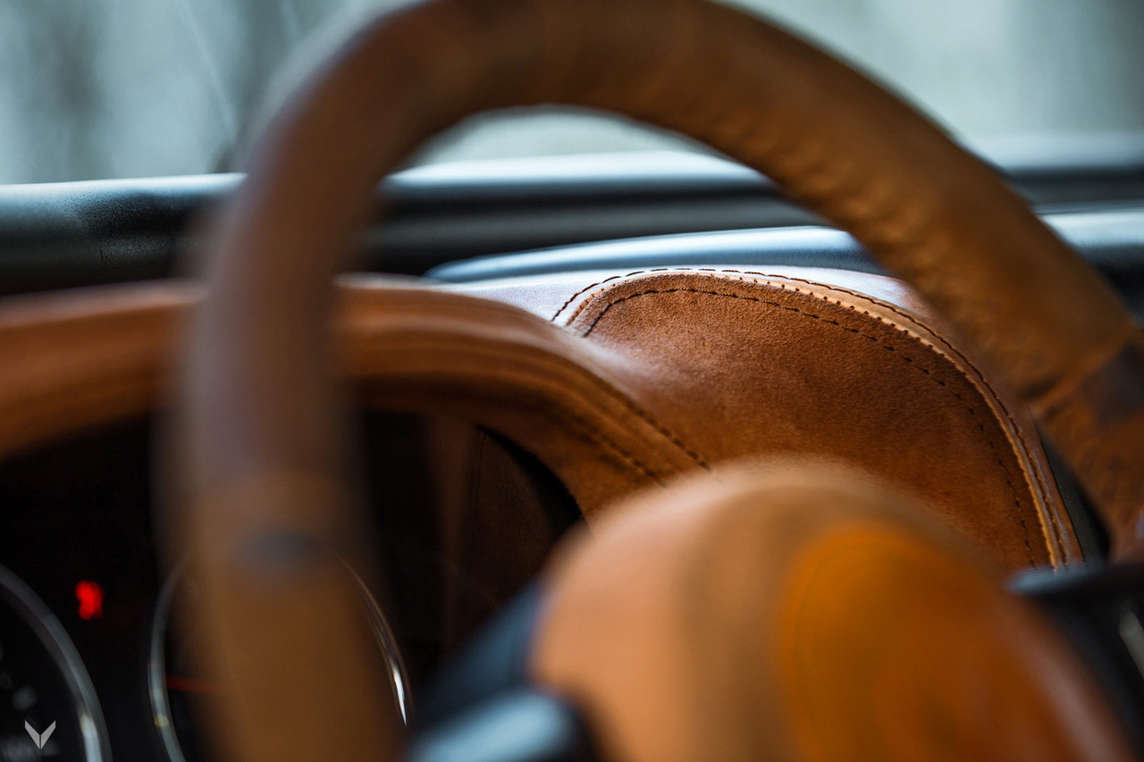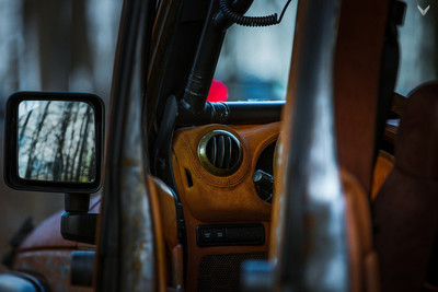 Необычный облик машины с декоративной ржавчиной получился благодаря удалению слоя краски и нанесению слоев специального лака. Салон получил буро-рыжую отделку кожей и замшей.