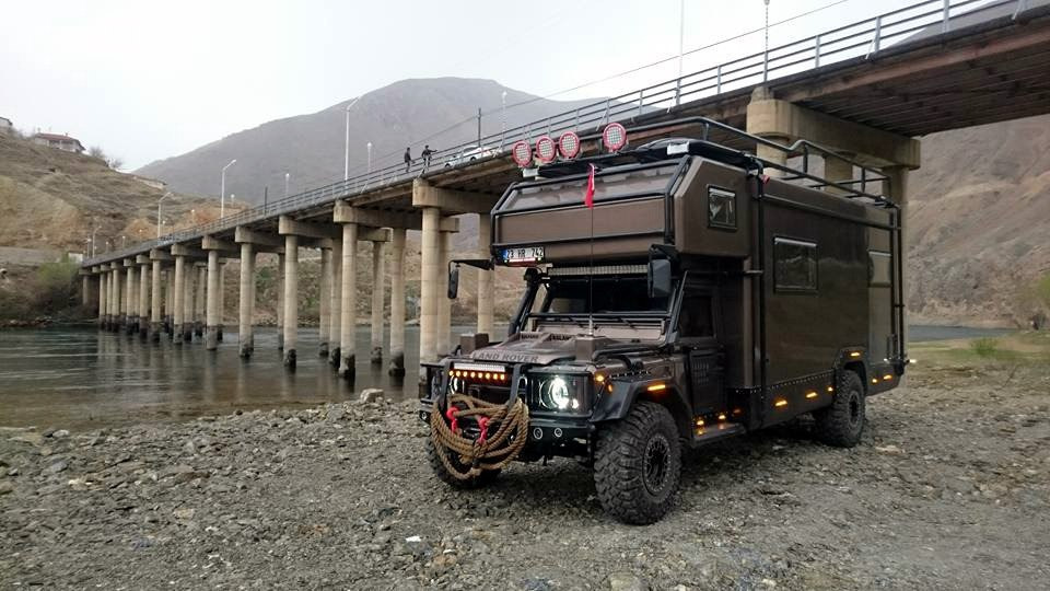 С другой стороны есть кемперы, в которых комфортно жить, но из-за дорожных шасси и маленьких колес съезжать с асфальтовых дорог на них противопоказано. Но есть и правильная альтернатива - кемпер, созданный на удлиненном полноприводном шасси Land Rover Defender. Именно этот потрясающий экземпляр, напичканный всякими прибамбасами, собран в Турции!