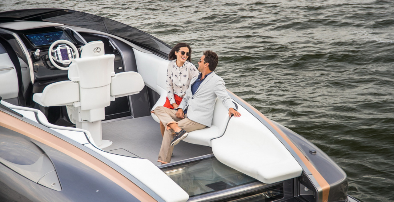 Lexus в Майами презентовал публике шикарную яхту под названием Sport Yacht Сoncept. 12,7-метровая моторная лодка оснащена двумя 5,0-литровыми бензиновыми моторами V8, совокупная мощность которых составляет 885 л.с. Такие двигатели используются на «заряженных» автомобилях японского автопроизводителя Lexus: RC F, GS F и LC 500. С двумя силовыми агрегатами яхта мчится по волнам на максимальной скорости в 79 км/ч.