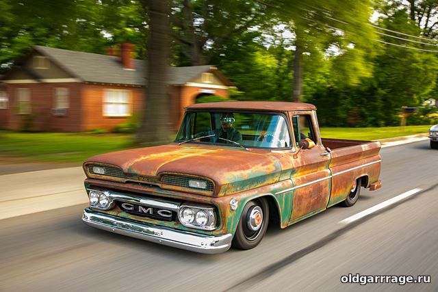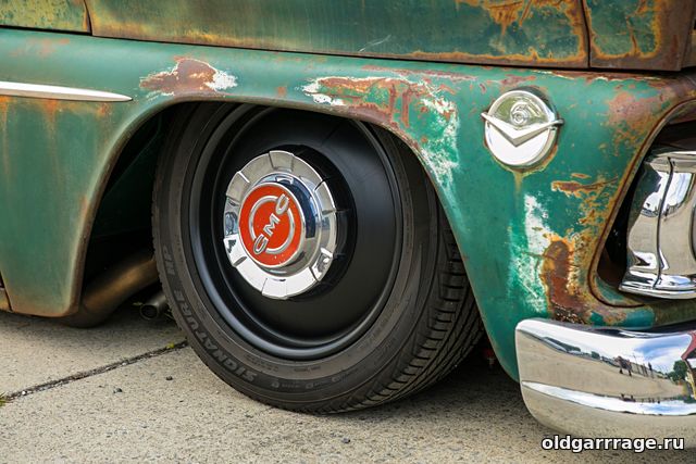 Этот GMC Truck был куплен за 4500 долларов, в ужасном ржавом состоянии и сразу же был отправлен в кастомную мастерскую на доработку. Кузов был восстановлен, но стиль остался тот же - тот же ржавый пикап но в идеальном состоянии и без единой дырки. Ржавый стиль был достигнут при помощи специальной технологии покраски. Искусственное старение снаружи, в сочетании с идеальным хромом, на низкой пневматической подвеске, очень даже смотрится. Может внешне и на любителя, зато стоит открыть дверь кабины и уже с проёмов виден уровень подготовки: безупречный классический салон, с кожаным диваном трёхспицевым стальным рулём и с цифровыми приборами Dakota.