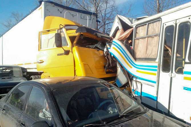 По версии полицейских, причиной ДТП стал отказ тормозной системы у большегрузного автомобиля, двигавшегося на спуск. В результате этого водитель фуры допустил наезд на вахтовый автобус ПАЗ, в котором находилось 23 человека (пострадавших нет), и на легковые автомашины, остановившиеся в транспортном потоке.