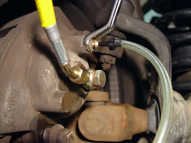 Не забудьте очистить от грязи штуцеры возле каждого колеса и налить в приготовленную емкость немного «тормозухи».