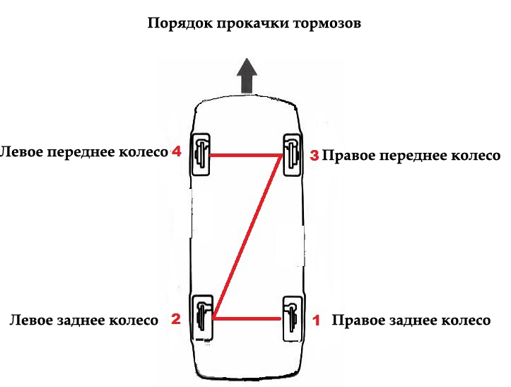 Если схема не указана, то тогда прокачка делается в виде буквы Z. Это значит, что нужно прокачивать правое заднее — левое заднее – правое переднее – левое переднее колесо.