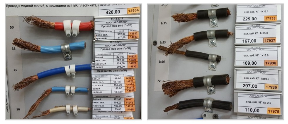 Сечение кабеля для самостоятельного изготовления стартовых проводов целесообразно выбрать в 25 квадратных миллиметров. Перед ними в номинальном ряду сечений идут 16 «квадратов», что маловато, если делать для себя и от души, а следующий порядок в ряду – 35 «квадратов», что заметно дороже. В магазинах товаров для электромонтажа продается провод ПВ-3-25. Это провод в ПВХ-изоляции, на морозе он сильно задубеет, зато оболочка цветная – можно отмерить плюсовой «хвост» красного цвета, а минусовой – черного. Останется более-менее эластичным на холоде провод в резиновой изоляции – типа КГ, но он бывает только черного цвета – отмечать полярность придется цветом «крокодилов» либо пометкой изолентой.