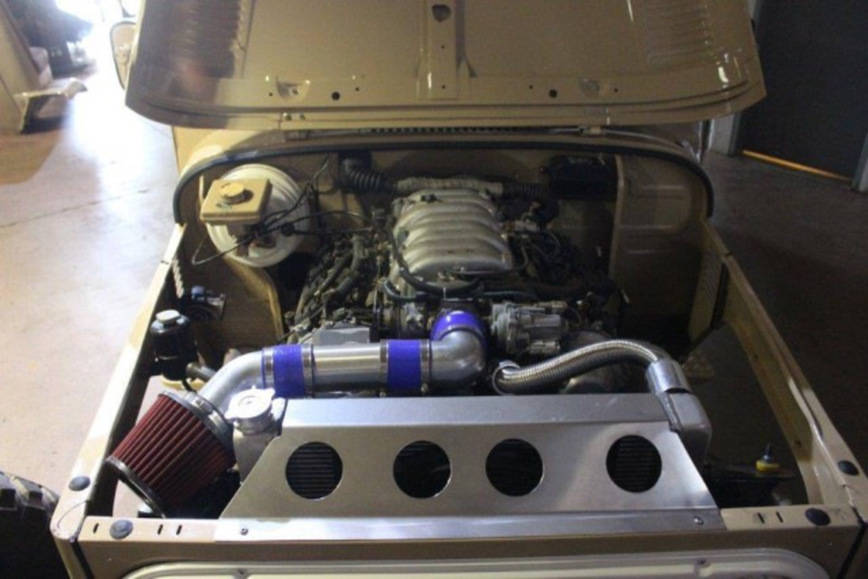Под капотом этого монстра располагается легендарный 4,0-литровый тойотовский мотор V8 1UZ-FE, который работает в паре с автоматом Toyota A650E. Полного привода необычный автомобиль лишился. Мощность в 300 л.с. передается на заднюю ось. Что касается задней подвески, то она была позаимствована от Land Rover.