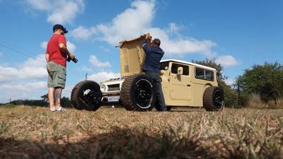 Он купил на разборке кузов от Toyota Land Cruiser 1976 года. Чтобы сотворить данное безумие из кусков кузова FJ45, создателю потребовалось 1400 часов работы. В итоге получилось очень необычно.