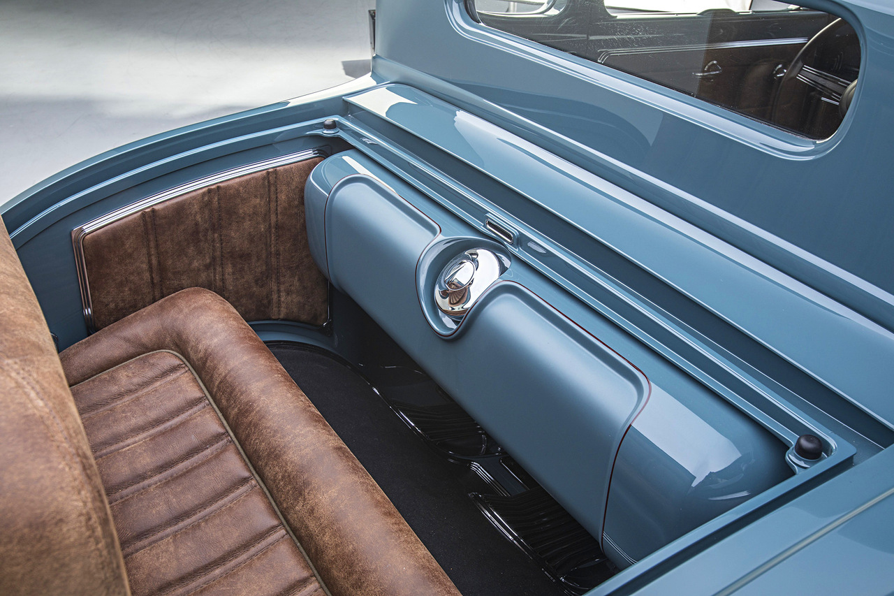 Этот Ford Model A получился выскочкой среди хот родов с огромным количеством отхождений от традиций, начиная от необычных колесных дисков и заканчивая невероятной краской цвета морской волны. Рама была сделана практически с нуля мастерской CAL Automotive Creations.