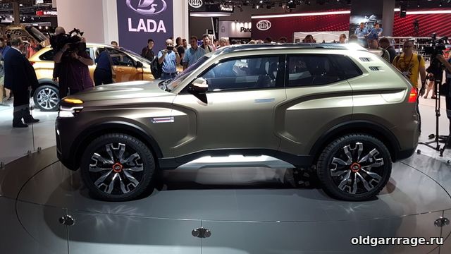 Уже по габаритам можно понять, что это 5-дверка; длина составляет 4,2 метра. Столько же, сколько и у нынешнего серийного варианта 5-дверной LADA 4x4. Если попробовать представить концепт в 3-дверном исполнении и на сантиметров 40 короче, то кроме выпуклостей ничего не останется; места для остальных вещей просто не хватит. Так что 4,2 метра - в самый раз. Колёса - 21-дюймовые с 5-спицевыми 2-цветными дисками.