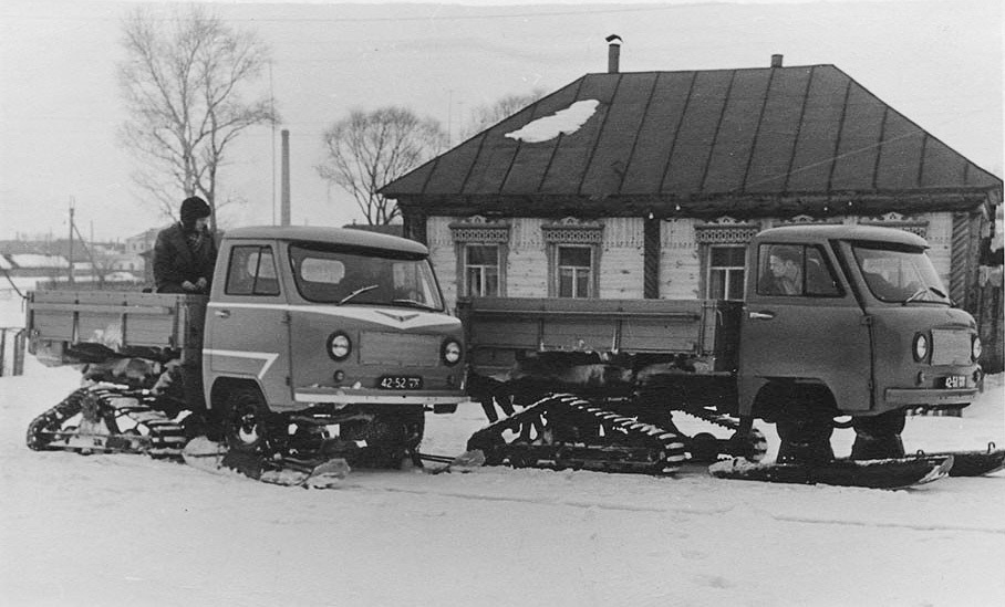 В Ульяновске начали работу над снегоходом для труднодоступных районов в 1960 году. На «головастик» УАЗ-451С вместо передних колес устанавливались лыжи, а на заднюю ось монтировались резино-металлические гусеницы. Силами двух человек переделка грузовичка в снежный вездеход занимала один час.