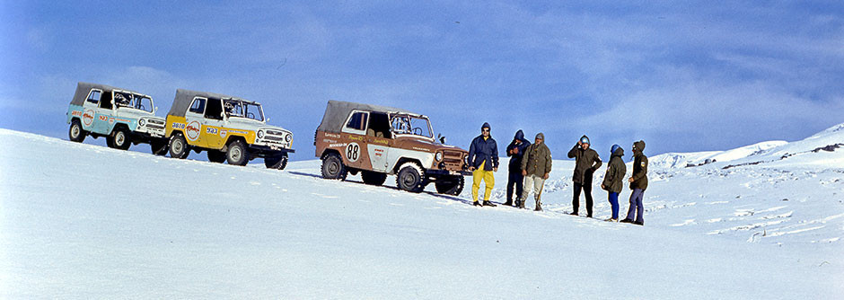 Где испытать модернизированный двигатель? Ульяновцы отправились в пустыню Каракумы. Разумеется, своим ходом, запланировав маршрут в 10 тысяч километров по маршруту Москва — Горький — Ташкент — Каракумы — Баку — Тбилиси — Ростов-на-Дону — Харьков — Москва. Помимо моторных обновлений, участвовавшие в пробеге УАЗы отличались опытной светотехникой, улучшенными тормозами, более удобными сиденьями. Инженеры сознательно выбирали дороги посложнее. Помимо собственно пустыни, заглянули на плато Устюрт и Памир.