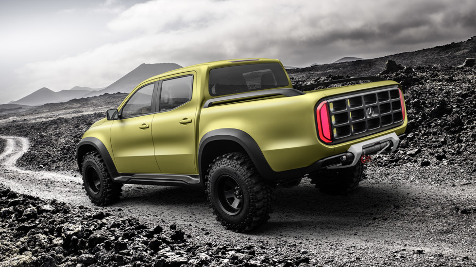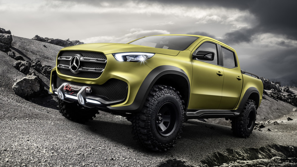 Концептуальный пикап X-Class был представлен в двух версиях: "Powerful Adventurer" - прообраз пикапа в традиционном понимании "рабочей лошадки", не боящейся ни грузов, ни бездорожья, и в версии "Stylish Explorer" - она нацелена на "городских пижонов" и семьянинов Каков характер, пока сказать сложно, но, думаем, над ходовыми и внедорожными качествами новинки штутгартские инженеры потрудились на славу.
